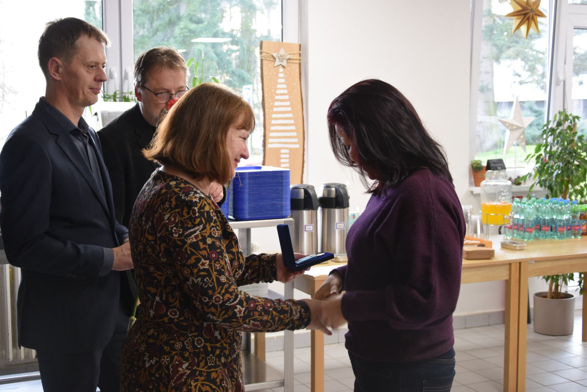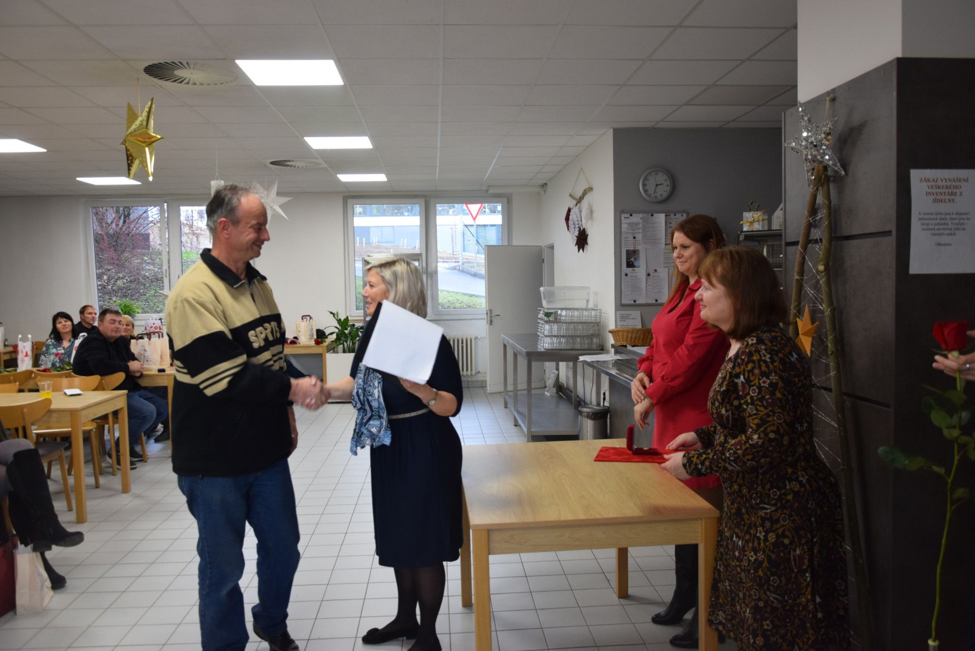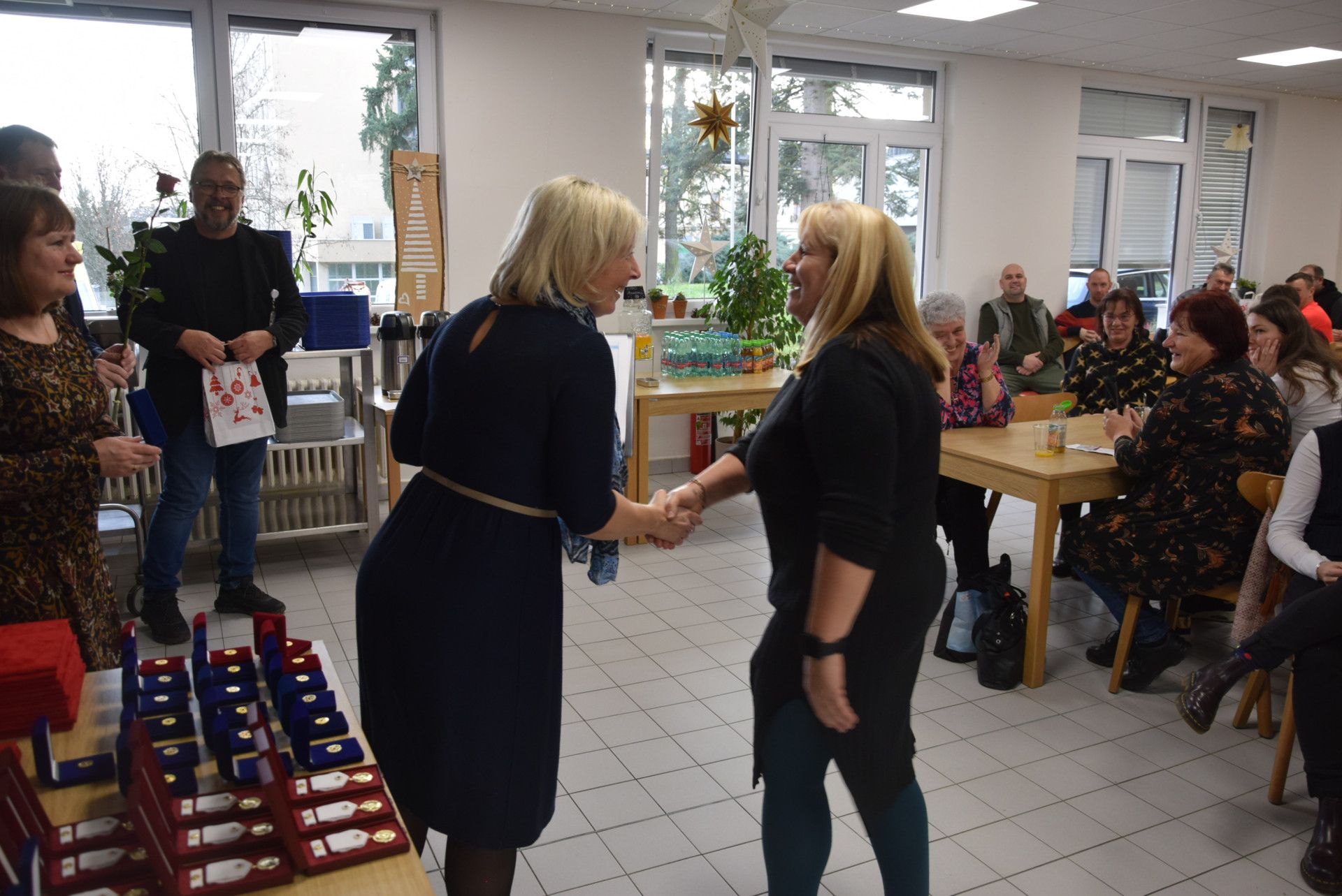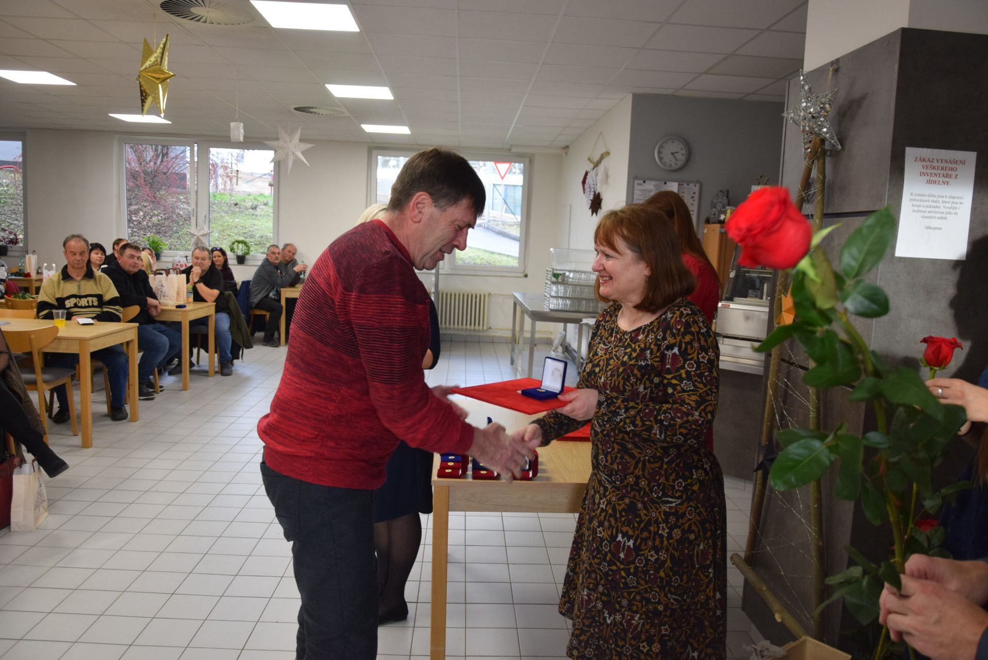 Společně s Českým červeným křížem jsme 9. prosince 2025 v naší nemocniční jídelně ocenili bezpříspěvkové dárce krve. Jako již tradičně získávají od Českého červeného kříže plakety prof. MUDr. Jana Janského a kříž ČČK. V prosinci bylo ceněno celkem 90 dárců a více než polovina se osobně dostavila a ocenění si převzala. Děkujeme, moc si toho vážíme.